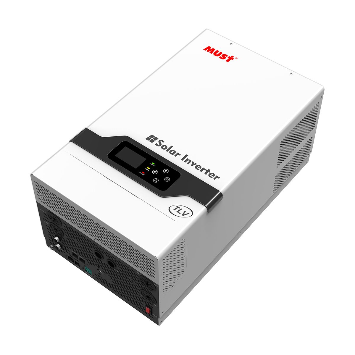 This split phase solar inverter PV1800 TLV series, capacity 6KW, DC 48V, it’s applicable to 110VAC/120VAC markets demands, which has AC output of single phase 110VAC/120V, split phase 220V/240V; In LCD display, you can set output voltage, frequency, charging voltage, charging current to design best use based on different loads applications; meanwhile, it has built-in two 80A MPPT solar charge controllers, you can take use of sunshine freely and save electricity bills.