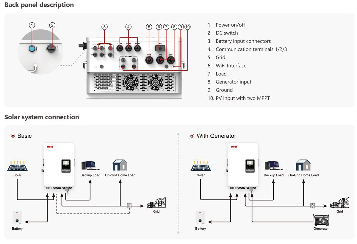 Tailored for large rooftop PV arrays, multiple orientations, and complex load conditions, it offers full compatibility with diesel generators, AC coupling, and parallel operation of up to 9 units. This flexibility makes it ideal for building resilient energy infrastructures.