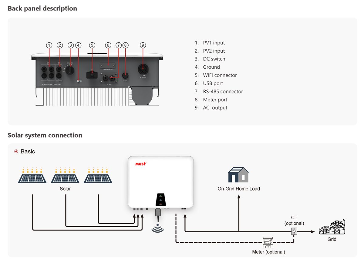 PH5900TM series PV inverters take full account of the needs of end customers, It is used to convert the DC generated by photovoltaic panels into AC and send it to the grid in a three-phase manner.with excellent performance at the same time, use LED as inverter status display, effectively improve product life. UsingDSP digital control,could afford wide grid voltage range, have a full range of protection features; to maximize the benefits at the same time, greatly enhance the reliability of the product.