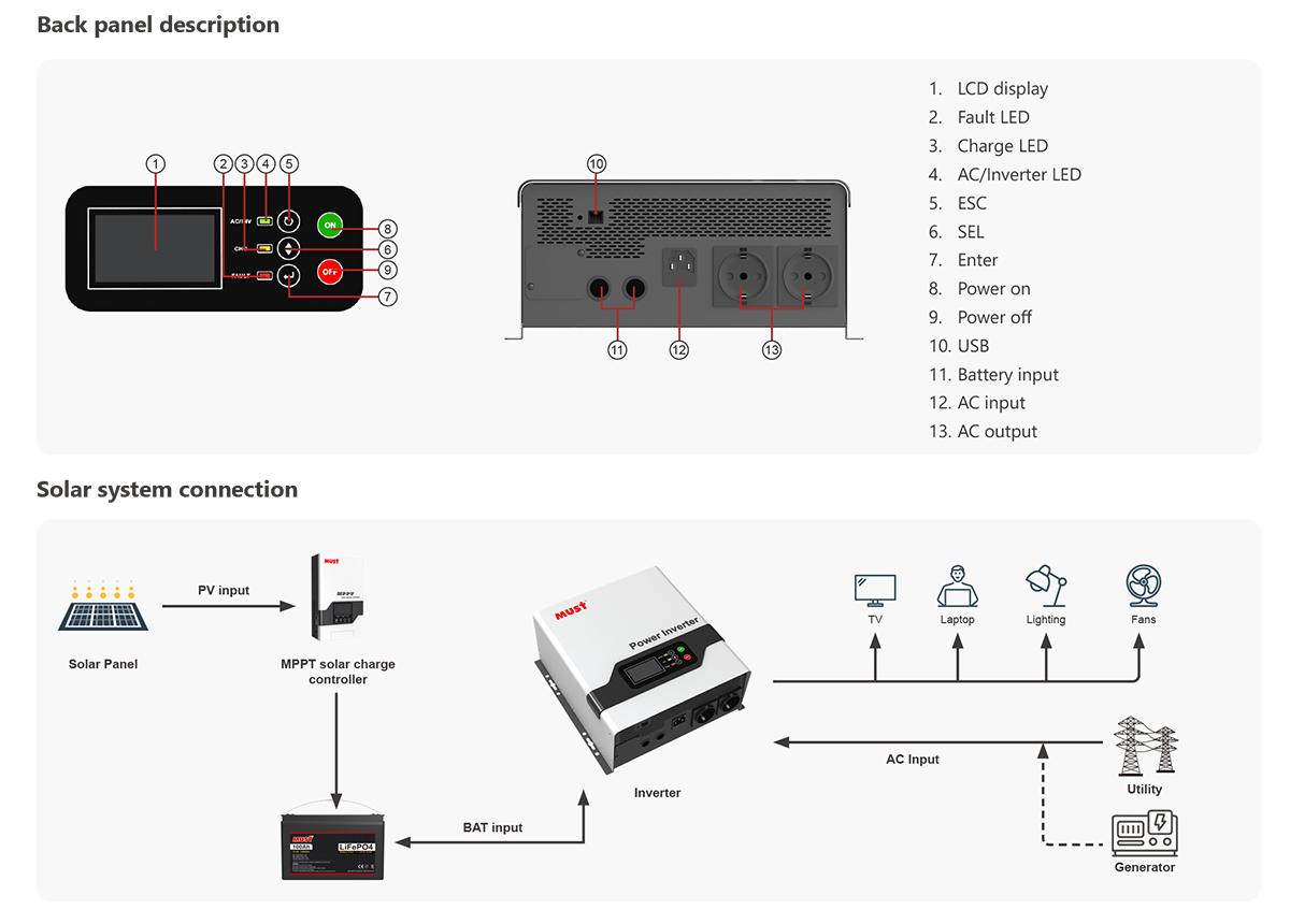 EP2100 PRO series inverter is a cost effective, intelligent with UPS function. The comprehensive LCD offers user-configurable and easy-accessible button adjustment such as battery charge current, battery charge voltage, frequency, buzzer etc. It’s perfect for the user who need a simple and economical inverter,with user-friendly installnation and setting.Tower and rack design available for different choices.
