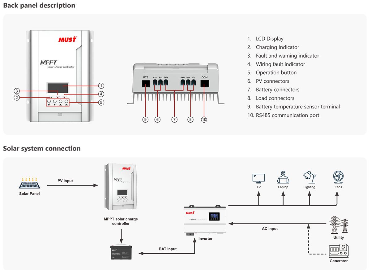 This solar charge controller is an advanced solar charger with maximum power point tracking. Applying intelligent MPPT algorithm, it allows solar charge controller to extract maximum power from solar arrays by finding the maximum power point of the array.