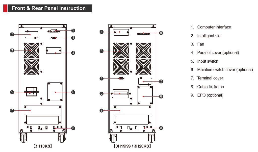 • With LCD+LED real-time display, users can intuitively understand the UPS operating status.