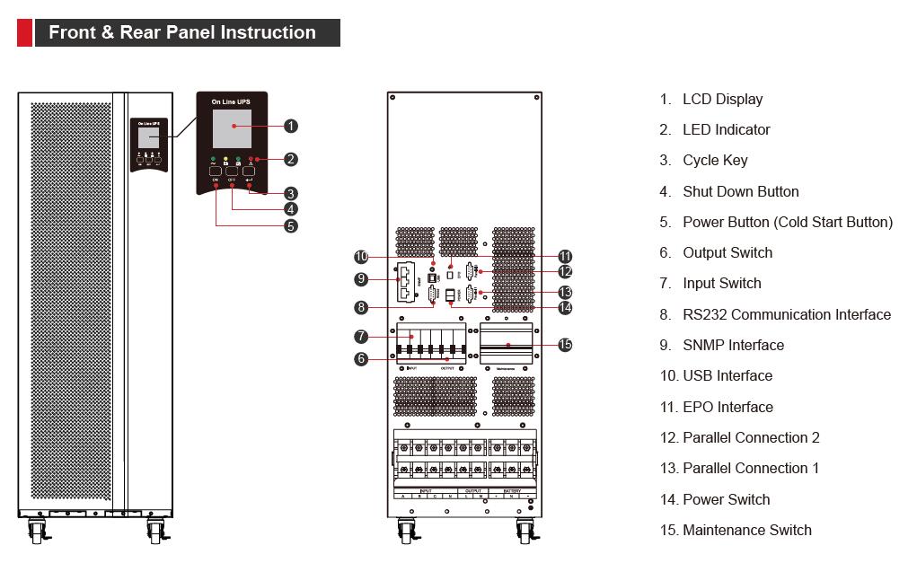 • With LCD+LED real-time display, users can intuitively understand the UPS operating status.