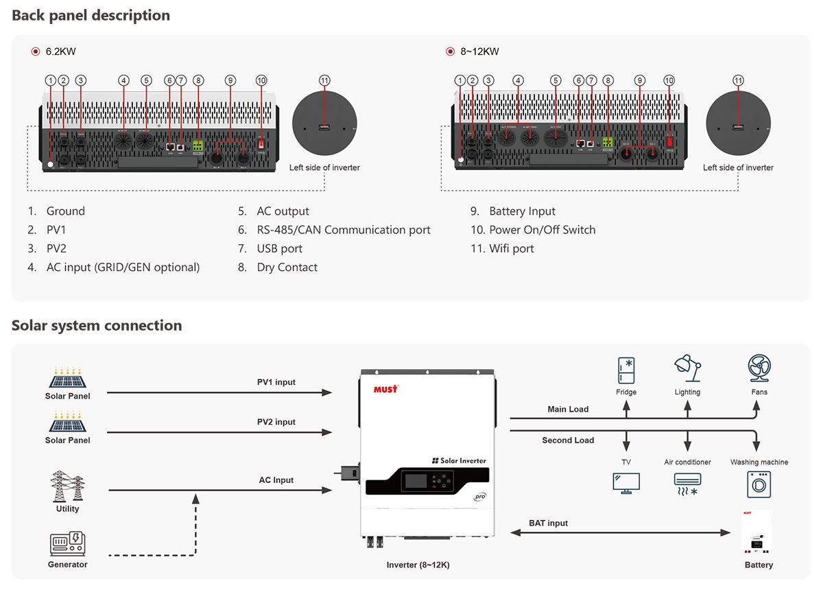 Rated Power 6200VA/6200W 8000VA/8000W 10000VA/10000W 11000VA/11000W 12000VA/12000W
