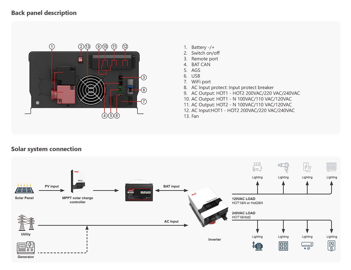 Low Frequency Pure Sine Wave Split Phase Inverter Charger 1~3KW | AC110V/220V | MPPT 80A | WiFi | BAT-CAN