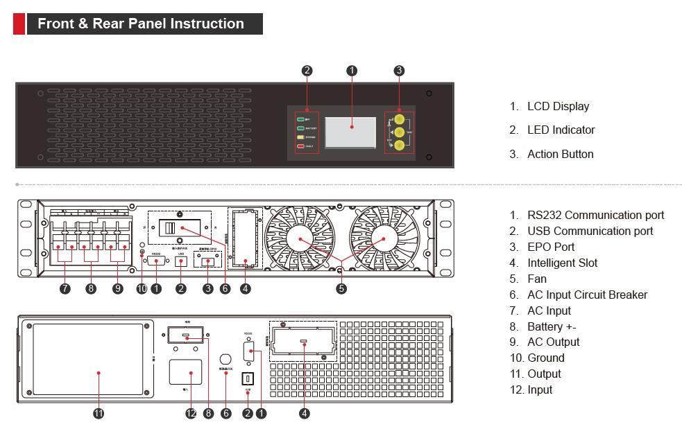 • With LCD+LED real-time display, users can intuitively understand the UPS operating status.