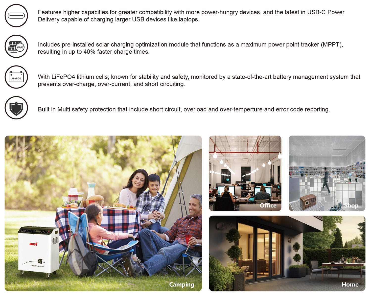 • Battery capacity: 1280Wh – 7168Wh (LiFePO₄)