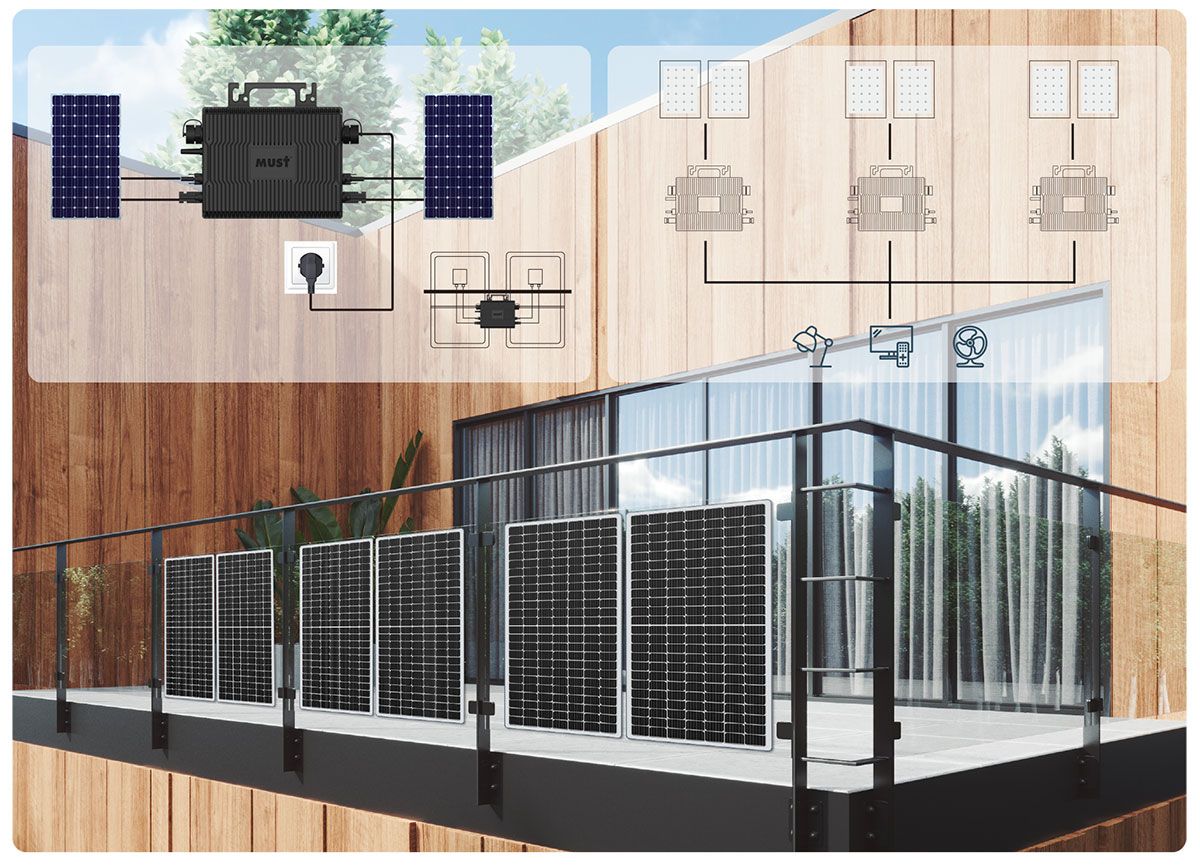 With the output power up to 2000 VA, MUST new microinverter PM series rank among the higher for 2-in-1 microinverters.