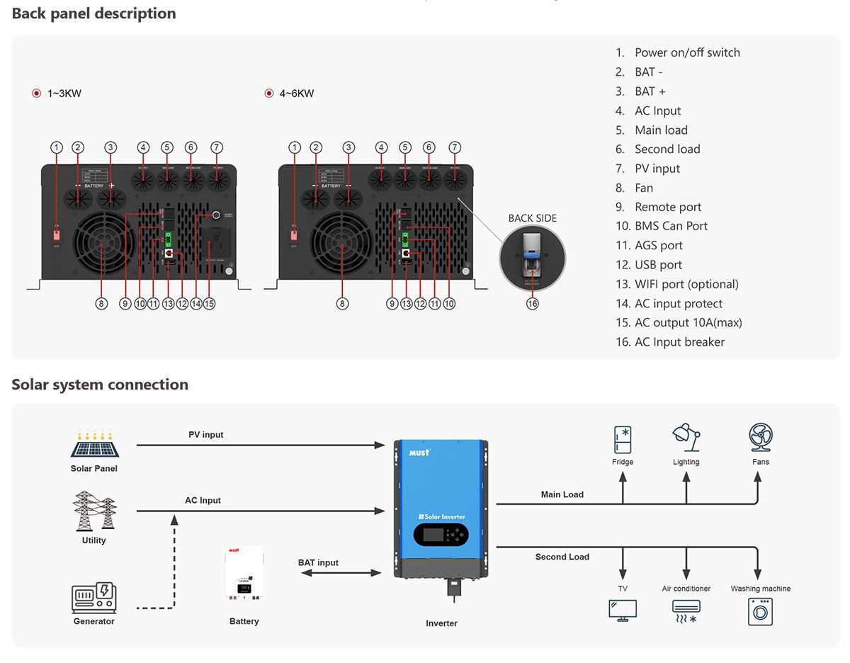 Low Frequency Solar Inverter AC 120V | MPPT 80A | WIFI | BMS | Dual output